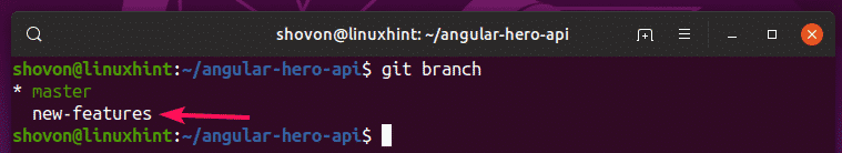 Now, if you list all the existing Git branches on your Git repository, the new branch should be listed as you can see in the screenshot below.