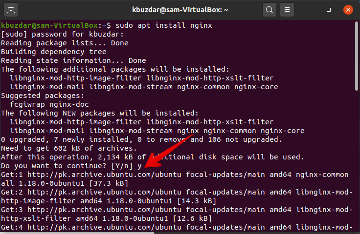 Now, update apt manager packages and install the latest release of Nginx on your system from the official apt repository by running the following command: