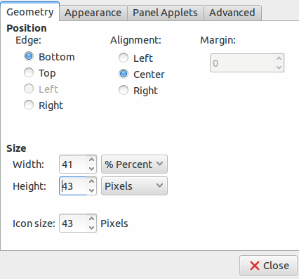 In this Settings, go in the Panel Applets tab and select highlight “taskbar(Window List)” then click on the “Edit” and change the settings like this: