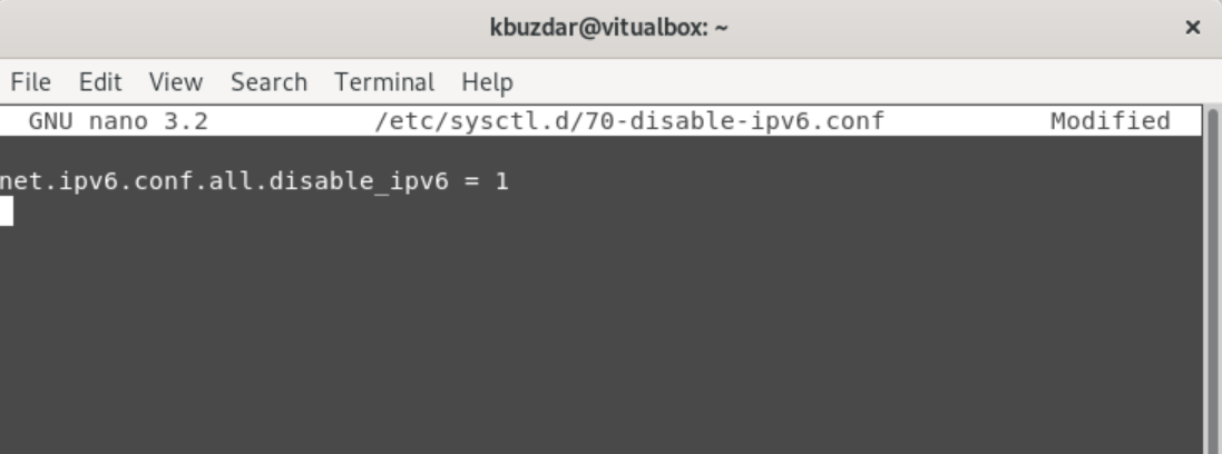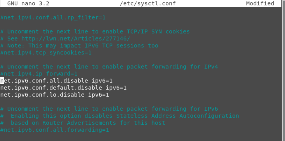 To disable these IPV6 connections, you need to use /etc/sysctl.conf file. Open this configuration file in any available editor. Here, we are using a nano editor for modifying this file, as shown in the command below: