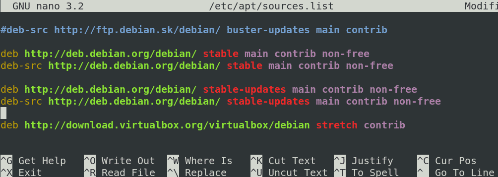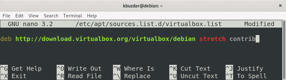 You can add a repository in Debian using the /etc/apt/sources.list file. Here, we will add the VirtualBox repository to the sources.list file.