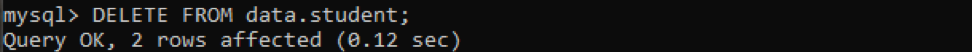 You can delete all the rows from the table ‘student’ using the below simple query in the command line as: