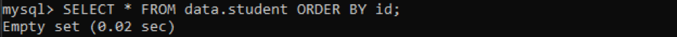 Another simple method to delete a row from the MySQL schema is through the command-line client. Open the MySQL command-line client under the newly installed ‘MySql’ via the ‘window’ button. First of all, check and display all the records of table ‘student’ using the ‘SELECT’ command as below.
