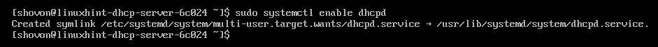Now, add the dhcpd service to the system startup of CentOS 8. This will automatically start the dhcpd service on boot.