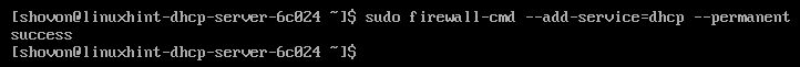Now, allow access to the DHCP server running on the UDP port 67 through the firewall with the following command: