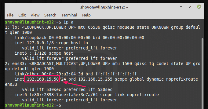 As you can see, the Linux Mint 19.3 machine automatically got the IP address 192.168.15.50 from the DHCP server.