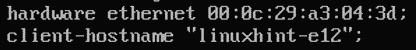 Here, hardware ethernet stores the MAC address of the network interface of the host. The client-hostname stores the hostname of the host.