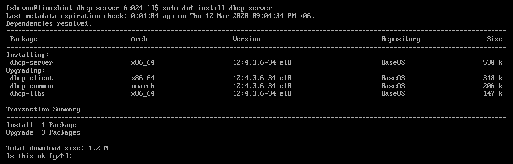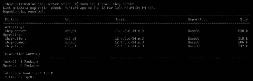 DHCP server package is available in the official package repository of CentOS 8. So, it is very easy to install.