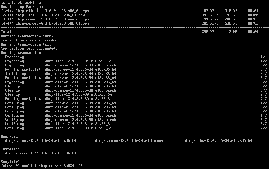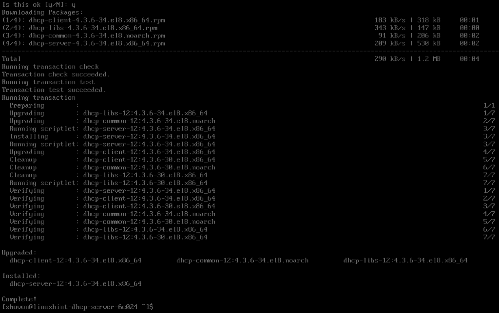 Once you’re done working with the configuration file, start the dhcpd service with the following command: