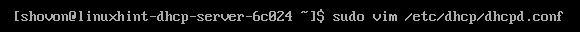 Now, type in the following lines in the /etc/dhcp/dhcpd.conf file.