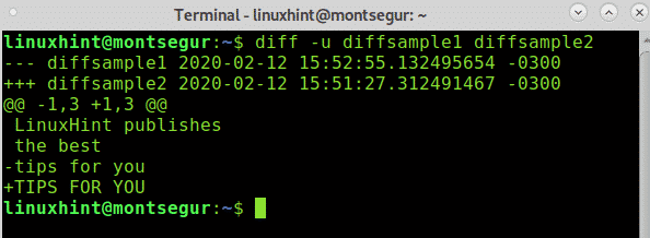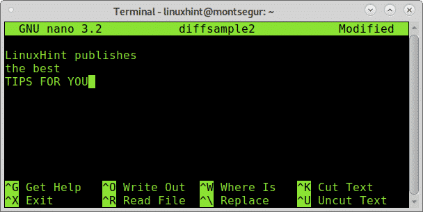 The only difference are the capital letters on the file diffsample2. Now lets compare it using diff again: