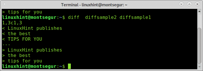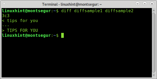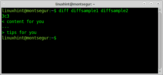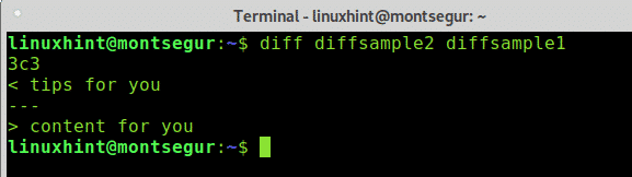 The output above, “3c3” means “Line 3 of first file of should be replaced for line 3 of second file”. The friendly part of the output is it shows us what text must be changed (“content for you” for “tips for you”)