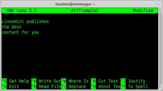 Now lets invert the order and instead of running “# diff diffsample2 diffsample1” run: