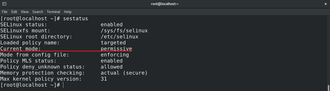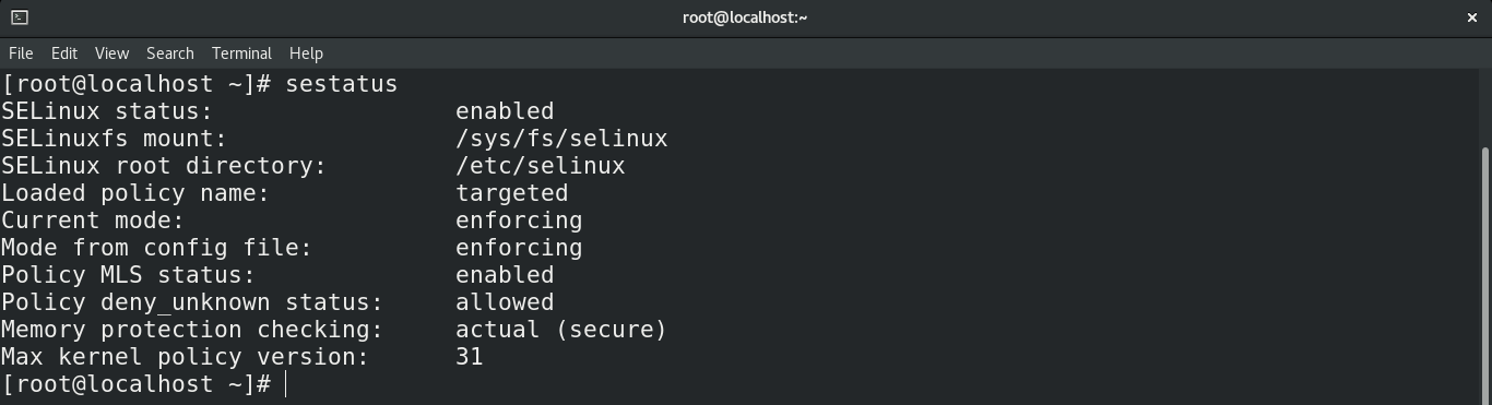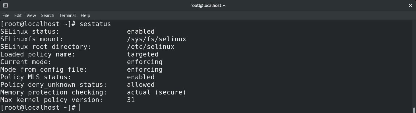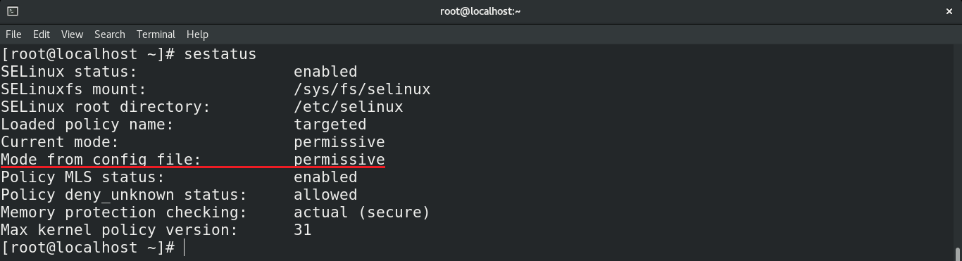Save the file and close the editor. The system needs a reboot to take the changes into effect. After rebooting, check out the SELinux status.