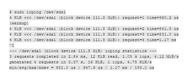 The ioping command is an altogether variant type of tool, but it can report disk latency by letting you know how long it takes for a disk to respond your requests and help in identifying the disk problems.