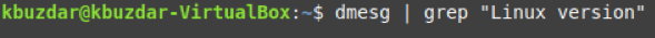 When we ran the dmesg command without any other parameters, the output was too large to view at once. Along with all the other information, the version of your Linux system was also displayed in that output, but it was difficult to locate. If you wish to see your Linux version with the dmesg command, then you can run the following command in your terminal: