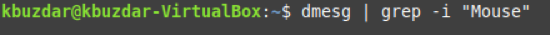 The dmesg command allows you to do so by running the command dmesg | grep –i “DEVICE”. Here, you have to replace DEVICE with the name of the device whose diagnostic messages you want to view. In our case, we want to check the diagnostic messages of the mouse. Therefore, we have replaced DEVICE with Mouse.