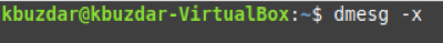 We viewed the diagnostic messages of a particular severity level in Example #3. However, if we want to display all the diagnostic messages with their severity levels, then we can run the command dmesg –x. The -x flag can be used with the dmesg command to display the diagnostic messages with their severity levels.