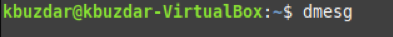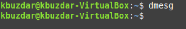 Once you will run this command, nothing will be displayed on your terminal. Therefore, to verify that the diagnostic messages history has been cleared, we will run the dmesg command again. This time, the dmesg command will not return any diagnostic messages on your terminal because the history has been erased.