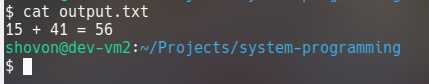 Then, I added the numbers and printed the sum on the console/terminal, the default stdout.