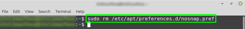Once the nosnap.pref file is removed, update the apt cache using the command: