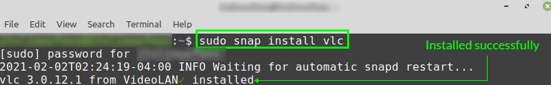 Let’s install the popular VLC media player snap application on Linux Mint: