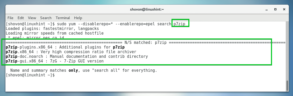 NOTE: Here, QUERY is the package that you want to search for. I searched for p7zip on EPEL repository.