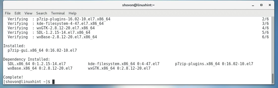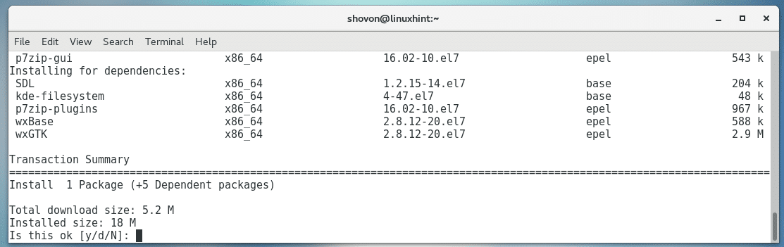 Let’s say, you want to install p7zip-gui from EPEL repository, you would run the following command:
