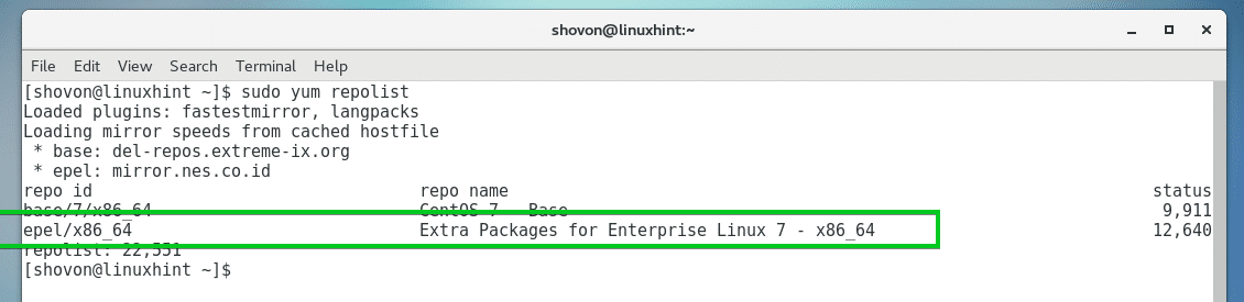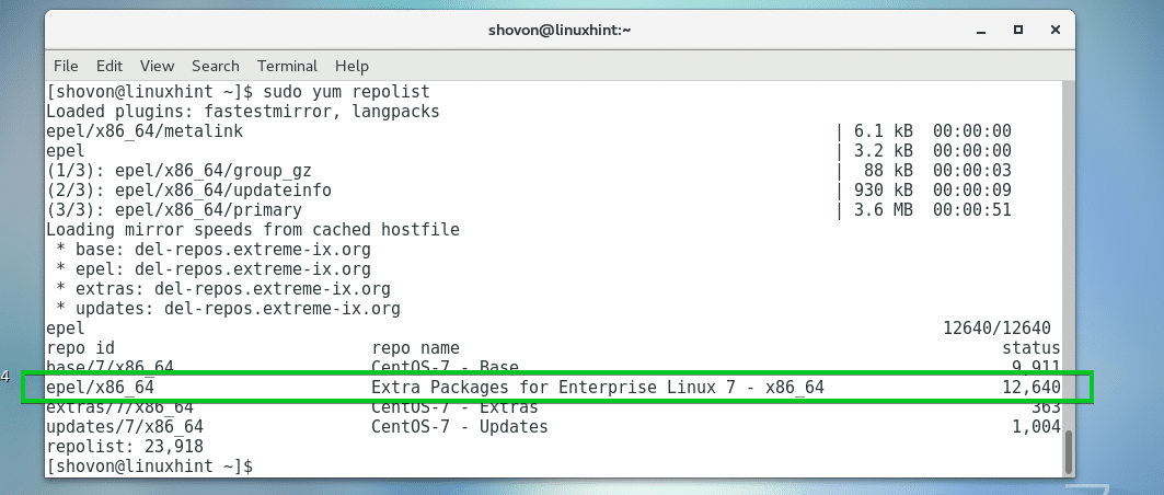 As you can see from the marked section of the screenshot below, EPEL repository is enabled.