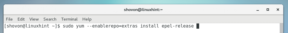 If you don’t have extras repository enabled or you don’t want to enable extras repository for installing only one package, then you can just temporarily enable extras repository and install epel-release with the following command:
