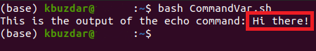 When you will press the Enter key to execute this command, you will be able to see the following output on your terminal. Here, the highlighted portion of the output is the output of the “echo” command that was stored in the “test” variable.