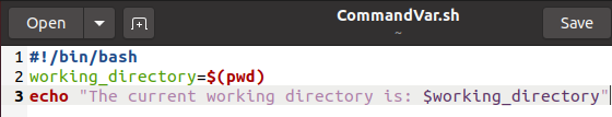 You can also print your working directory by making use of the “pwd” command stored in a variable. To demonstrate this, we will modify the Bash script created above yet again by following the steps mentioned below: