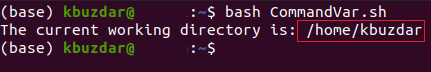 Now execute this Bash script in the very same manner as explained above. The output of this Bash script will show you the current working directory. The highlighted portion of the output is in fact, the output of the “pwd” command.