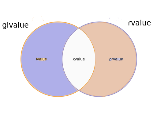 So, glvalues is the union set of lvalues and xvalues and rvalues are the union set of xvalues and prvalues. xvalues is the intersection set of lvalues and prvalues.