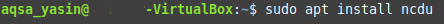Since the “ncdu” command is not installed by default on the Linux systems, therefore, we will first install it by running the following command in the terminal: