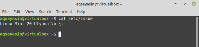 In Linux distribution, specifically for Linux Mint 20, there are a lot of various utilities and text files present, which may help you to find the Linux Mint version. You can search the file that contains more information about the installed Linux Mint version, and that is available for all Debian based Linux/GNU distributions. This file you can find at etc/issue. Run the below-mentioned command on the terminal that will display the installed Linux Mint version: