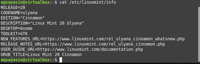 Type the following command on the terminal to display the information about the installed Linux Mint version: