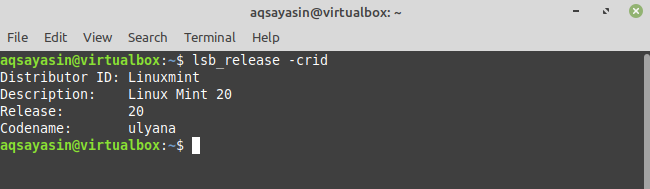 One more popular command which is available on Linux Mint is the ‘lsb_release’ command that provides much flexibility to select which piece of information is important for you to include in the Version checking task. To reveal the information about the released Version, distributor details, and codename, then you need to execute the following command: