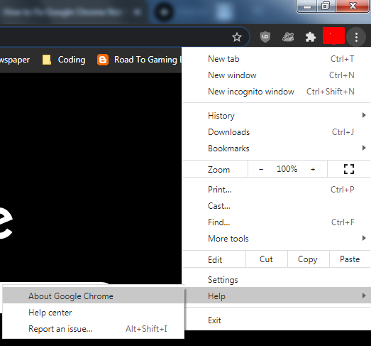 Often, the reason why Chrome is not responding is due to it being out of date. To check to see if your Chrome needs to be updated, click on the three vertical dots, then Help, and then on About Google Chrome.