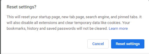 This will open up a prompt where you simply have to click on the Reset Settings button.