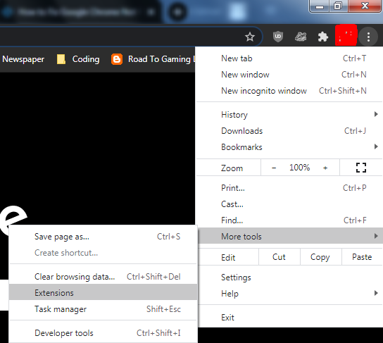 Another reason why your Chrome might not be responding might be due to some extension causing an issue. This may be due to it falling out of date or becoming incompatible with your Chrome, mainly due to not being maintained regularly. To disable your extensions, once again click on the three vertical dots, then the More tools option, and finally on the Extensions option inside of it.