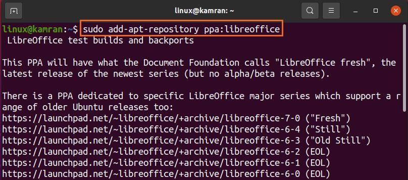Alright! That’s it. The PPA repository is successfully added to the system, and LibreOffice is successfully installed.
