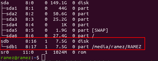 In my case, it will be the device found inside the rectangular region (/dev/sdb/):