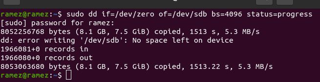 The next step is to completely wipe out all data present on your USB device so that it cannot be recovered later by using any recovery tool. This, however, is an optional step and you can choose to skip this if you like. However, for security reasons, it is highly recommended that you go ahead with this. This process can be done by simply running the following command into the terminal: