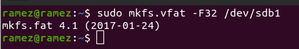 Once this is done, we can finally format our USB device to FAT32 using the mkfs command which is the following: