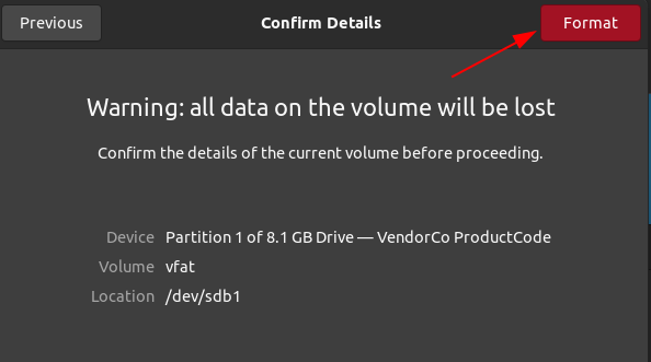 Next, confirm your details and once you’re sure everything is okay, click on the Format button on the top right-hand side as pointed by the arrow shown in the image below.