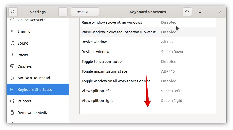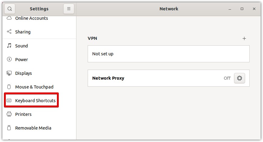 In the Settings window, select Keyboard Shortcuts from the left pane.