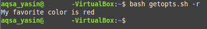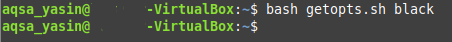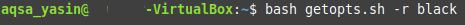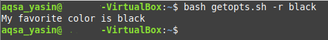 After saving this bash script, now is the time to test it. Again, we will be testing all the cases one by one. First, we will run the bash script with the “-r” flag and a sample argument “black” to see if it produces the correct output or not in the following manner: