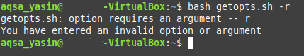 Now, we will test this script with an invalid flag and a valid argument in the following manner: