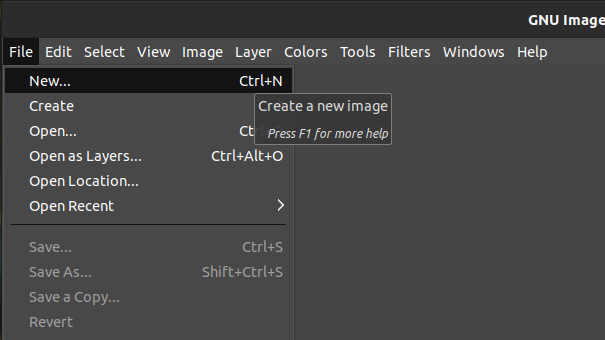 The very first step is to create a new image. From the GIMP main window, go to File >> Menu. Alternatively, we can use the keyboard shortcut “Ctrl + N”. If there needs a circle to be drawn on top of an existing image, create a new layer from Layer >> New Layer. Alternatively, use the keyboard shortcut “Shift + Ctrl + N”.